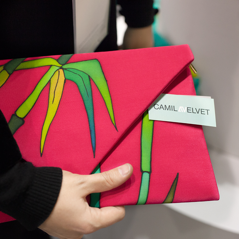 Die Motive stammen aus dem Dschungel, und es ist dessen Darstellung in einer cleanen, reduzierten und doch warmen Formensprache, was diese Stücke so modern macht. Ob Bambus, Tigerkopf oder stilisierte Exotikblüte – die ungewohnten Farbkombinationen machen gute Laune. Man wünscht sich sofort eine geeignete Cocktailparty, die man mit einer von Camila Velvets Clutches unter dem Arm besuchen könnte. Der Museumsshop des Balenciaga-Museums führt einige ihrer Stücke, und auch für das Madrider Label Alvarno hat sie bereits Designs entworfen. Ein gelungener Start.